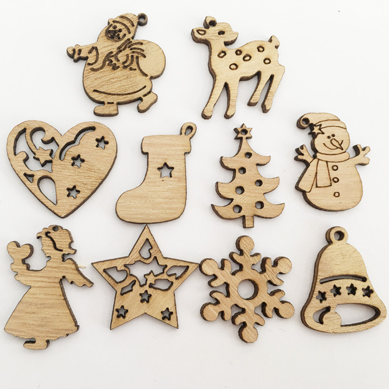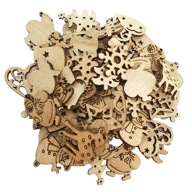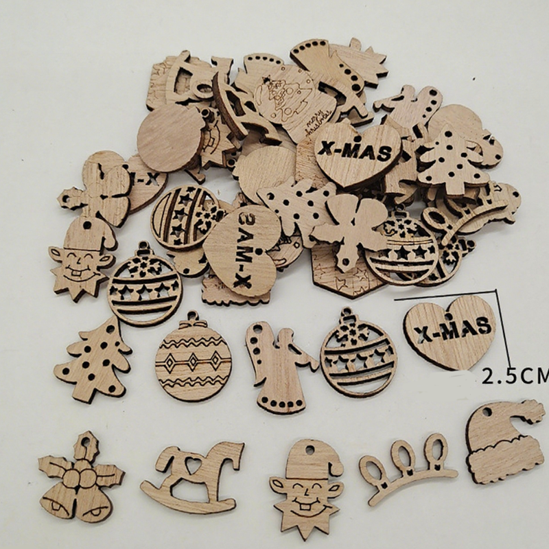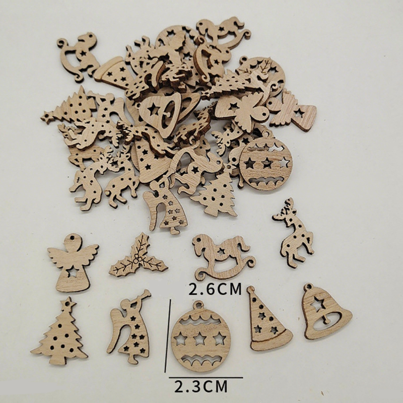 50/100PCS Unfinished Mini Wooden Christmas Ornaments